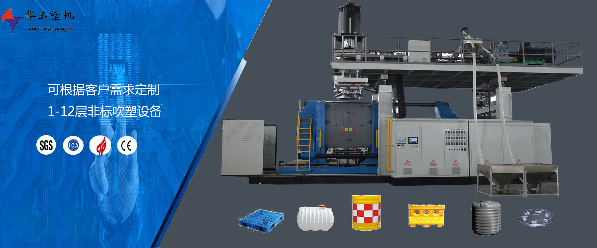 濰坊市華玉塑料機(jī)械有限公司創(chuàng)辦于貳零零貳年,是超大型全自動(dòng)中空吹塑設(shè)備專業(yè)生產(chǎn)廠家。公司融合國內(nèi)外先進(jìn)技術(shù)和理念,專業(yè)設(shè)計(jì)、生產(chǎn)、銷售一層到十層的大型全自動(dòng)中空成型機(jī)組。我公司生產(chǎn)的各型號(hào)吹塑機(jī)可生產(chǎn)50升到30,000升的各類塑料水桶,噸桶、雙環(huán)桶、水馬、路錐、隔離墻托盤、桌板、浮筒、皮劃艇、工具箱包等中空制品。優(yōu)良的品質(zhì)、穩(wěn)定的性能、優(yōu)越的性價(jià)比使公司產(chǎn)品不僅暢銷國內(nèi)市場,并出口到亞洲、東南亞、中東、歐洲、北美、南美、非洲等80多個(gè)國家和地區(qū),深受客戶的好評...